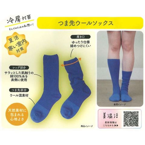 大人気美温活シリーズから夏冷え対策におすすめのウールソックスが登場です。レッグ部分は表糸綿100%、冷えやすい足先部分はウール混素材を使用した冷房対策にぴったりな一足です。
