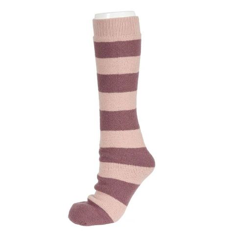 福助 満足 美温活 おふとん心地 2重編み ボーダー ロング ソックス 60cm丈 レディース ルームソックス 22-25cm fukuske