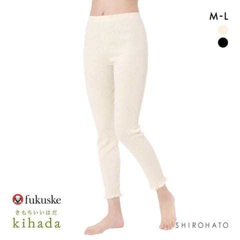 福助 kihada コットン リブレギンス 裾メロー レディース ボトムス ルームウェア パジャマ スパッツ fukuske キハダ