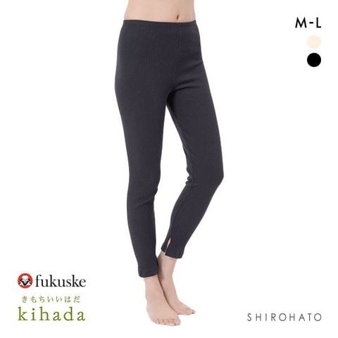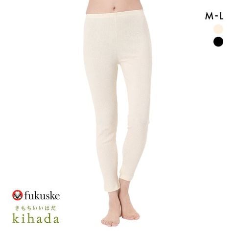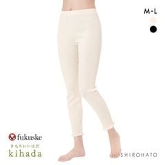 福助 kihada コットン リブレギンス 裾スリット レディース ボトムス ルームウェア パジャマ スパッツ fukuske キハダ