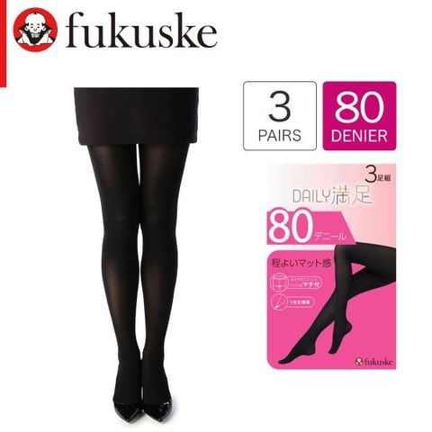 福助 Daily満足 程よいマット感 80デニール タイツ 3足セット レディース マチ付き つま先補強 あったか 大きいサイズ fukuske