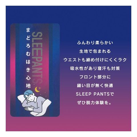 就寝時用に開発されたニットトランクスの登場です。ふんわり柔らかい生地を使い、ウエストも締め付けにくく窮屈感を感じにくいです。吸水性があり寝汗対策も万全、さらにフロント部分に縫い目がないので快適な履き心地です。SLEEPANTSでぜひ脱力体験をしてみてはいかがでしょうか。