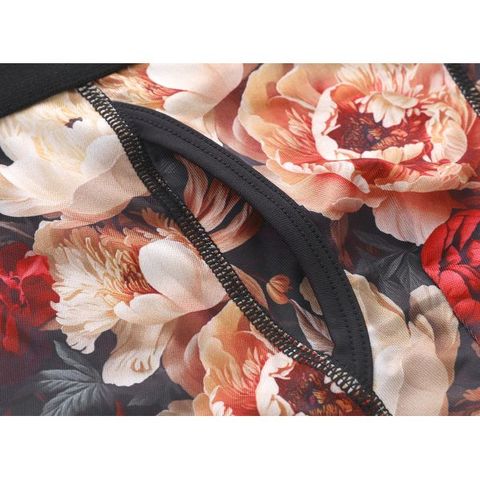 深く鮮やかな発色のアンティーク調フラワー柄をプリントしたシックなボクサーパンツです。ウエストゴムはシックなブラック&控えめロゴ入りのおしゃれなデザイン☆