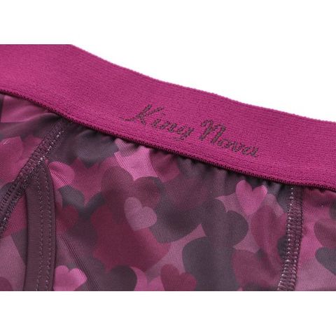 シックなグラデーションカラーで大小さまざまなハートをぎっしりとプリントした、愛らしさのあるボクサーパンツです。ウエストゴムはシックなローズパープル&ロゴ入りのおしゃれなデザイン☆