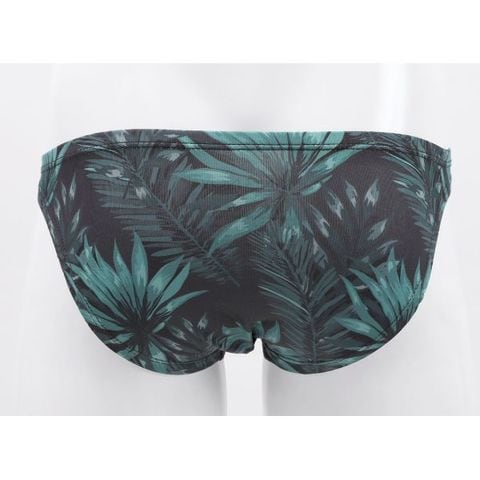 ボタニカル柄を描いたワイルドなフルバックビキニです。ウエスト・脚ぐりには細ゴムをくるんだ安定感のあるはき心地です。