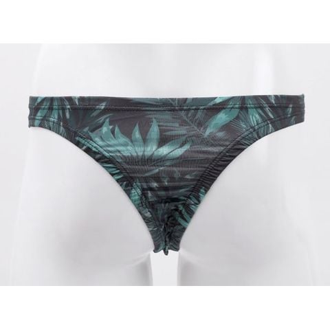 ボタニカル柄を描いたワイルドなTバックビキニです。ウエストと脚ぐりには細ゴムがくるまれており、安定感のあるはき心地です。