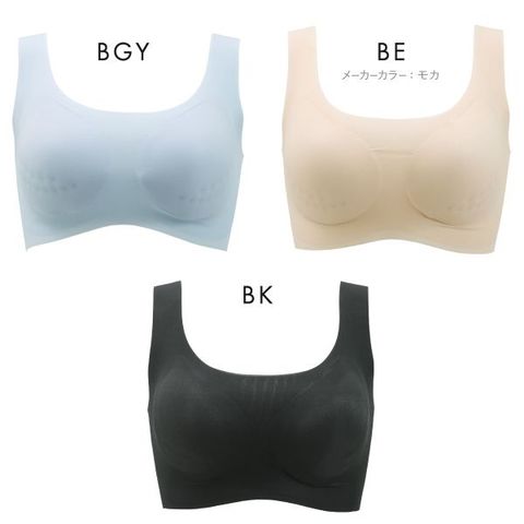 | 仕 様 | ・穴あき加工メッシュカップ仕立て ・ホックなし、かぶりタイプ ・パッド取外し:可 ・肩紐:取外し不可、調節不可 ・ワイヤーなし ・サイドボーンなし |