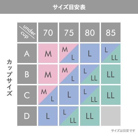 | サイズ | レディース M(バスト79-87cm) L(バスト86-94cm) LL(バスト93-101cm) |