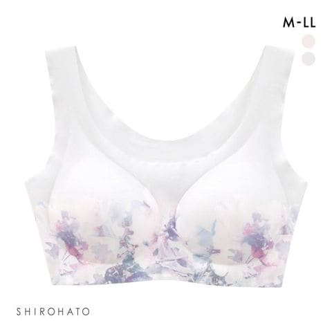 縫い目のない、するんとなめらかな着け心地。優しいフラワープリントをのせたシームレスノンワイヤーハーフトップです。