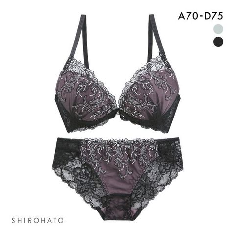 流れるようなアイビー刺繍に繊細なラメがきらめく美しいブラセット。シアーな透明感でレースの美しさが際立つ上品なデザインです。