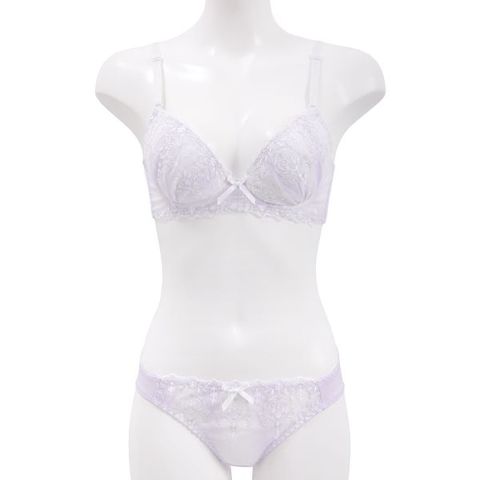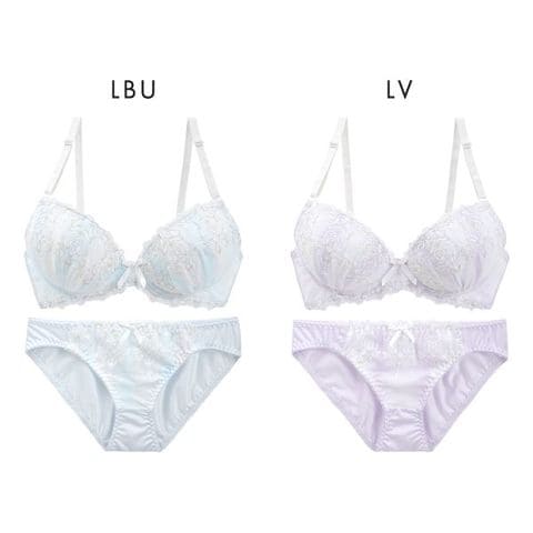 ふんわり綿あめのようなグラデーションに、オーロララメのきらめく刺繍レースを重ねた、フェミニンで上品なブラセット。胸中心にはピュアホワイトのリボンが愛らしいアクセントをプラス。