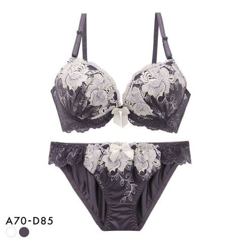 | 仕 様 | 【ブラ】 ・脇高設計 ・3/4カップ ・ホックの数:2段3列 ・内蔵パッドあり、パッドポケットなし ・肩紐:取り外し可・調節可 ・L字ワイヤーあり ・サイドボーン:あり 【ショーツ】 ・伸縮性:バック縦横にあり ・クロッチ:あり ・透感:なし |