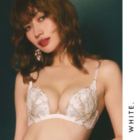 L字型ワイヤーがバストをすくい上げて寄せ集め、厚手カップ+カップの9割を占める極厚プッシュアップパッドがバストボリュームをグイっと押し上げ、ふっくらまん丸バストをメイクします。