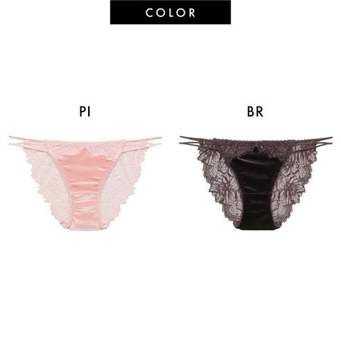 繊細なレースがベルベットの深みを引き立てるノーマルショーツ。サイドの2本のストリングコードが視線を誘うアクセントに。バックの涙型ホールがセンシュアルなバックスタイルを演出します。