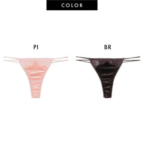 繊細なレースがベルベットの深みを引き立てるTバックショーツ。サイドの2本のストリングコードが視線を誘うアクセントに。バックのトライアングルホールがセンシュアルなバックスタイルを演出します。