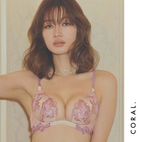 L字型ワイヤーがバストをすくい上げて寄せ集め、厚手カップ+カップの9割を占める極厚プッシュアップパッドがバストボリュームをグイっと押し上げ、ふっくらまん丸バストをメイクします。