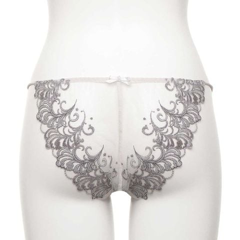 バックに贅沢にエンブロイダリーレースを使用したノーマルショーツ。バックの中心のパール付きの小さなリボンが愛らしさを演出します。