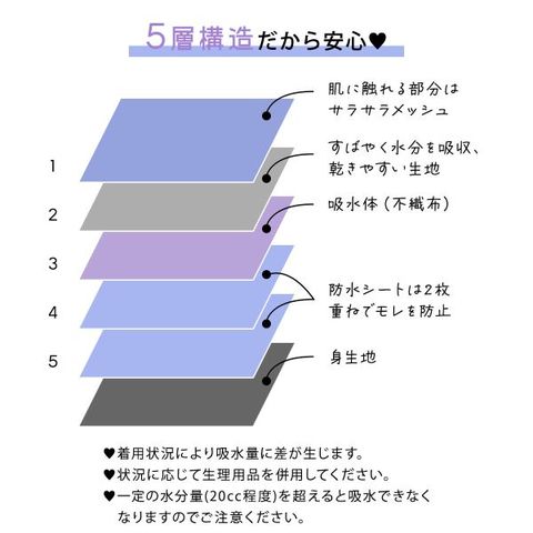 ※量が多い日や夜寝る時など、ショーツ単体でのご使用が不安な場合はナプキンを併用してお使いください。