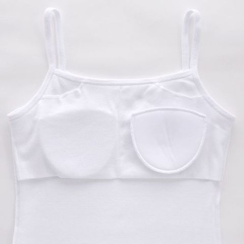 バストトップや胸の膨らみが気になりだした女の子に嬉しい、パット入りキャミソール☆パットがバストを優しくカバー、透けからも守ります。