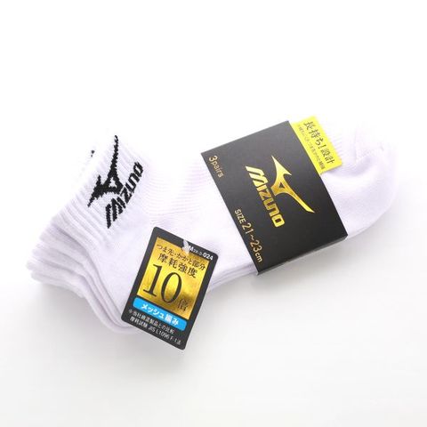 ミズノ MIZUNO ソックス 靴下 スニーカー丈 3足組 キッズ ジュニア 高耐久 つま先かかと補強 スポーツ 白 黒 21-23cm 23-25cm