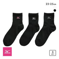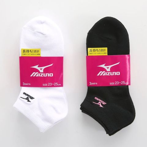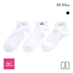 ミズノ MIZUNO ソックス スニーカー丈 靴下 3足組 白 黒 刺繍 制菌 抗菌防臭 レディース 23-25cm