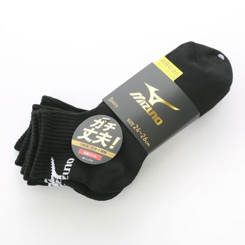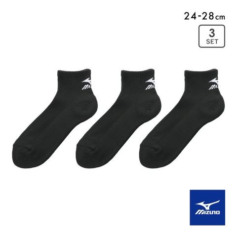 ミズノ ソックス ショート丈 3足セット 破れにくい 黒 足底パイル 靴下 メンズ 24-26cm 26-28cm MIZUNO