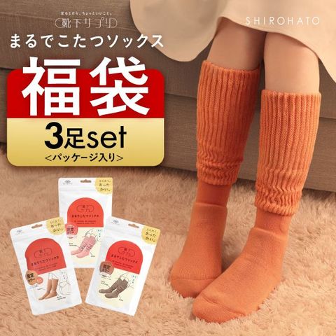 靴下サプリ とにかくあったかい まるでこたつソックス 三足組 靴下 ハイソックス レディース 冷え対策 発熱 23-25cm