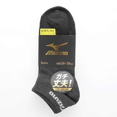 ミズノ ソックス スニーカー丈 3足セット 破れにくい 丈夫 黒 グレー メンズ スクール スポーツ 靴下 24-26cm 26-28cm MIZUNO