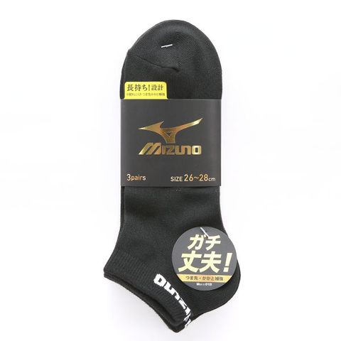 ミズノ ソックス スニーカー丈 3足セット 破れにくい 丈夫 黒 メンズ スクール スポーツ 靴下 24-26cm 26-28cm MIZUNO