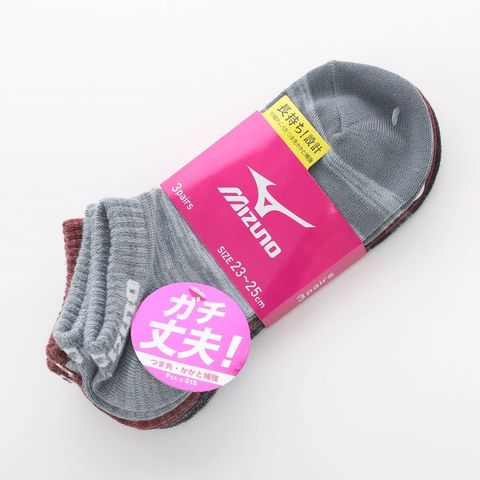 ミズノ ソックス スニーカー丈 3足セット 破れにくい 丈夫 つま先かかと補強 レディース 23-25cm 引揃え 靴下 MIZUNO