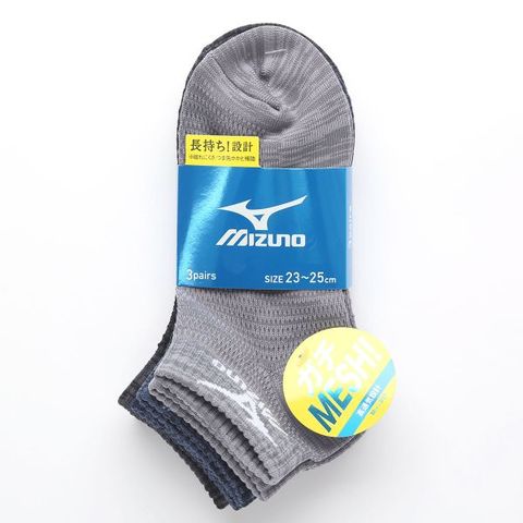 ミズノ ソックス スニーカー丈 3足セット オールメッシュ 高通気設計 引揃え レディース 靴下 夏 スポーツ 23-25cm MIZUNO
