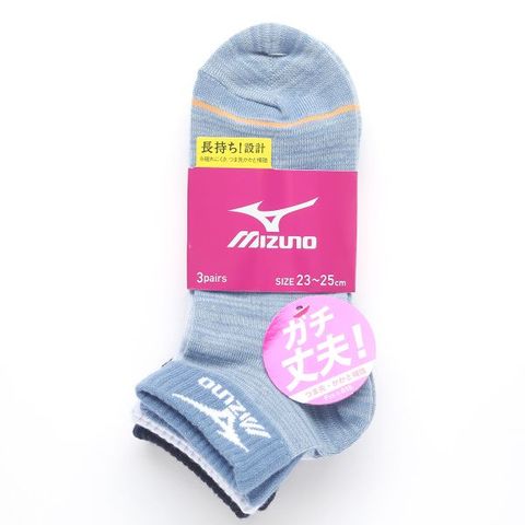 ミズノ ソックス スニーカー丈 3足セット 破れにくい 丈夫 つま先かかと補強 ロゴ 靴下 レディース 23-25cm スポーツ MIZUNO