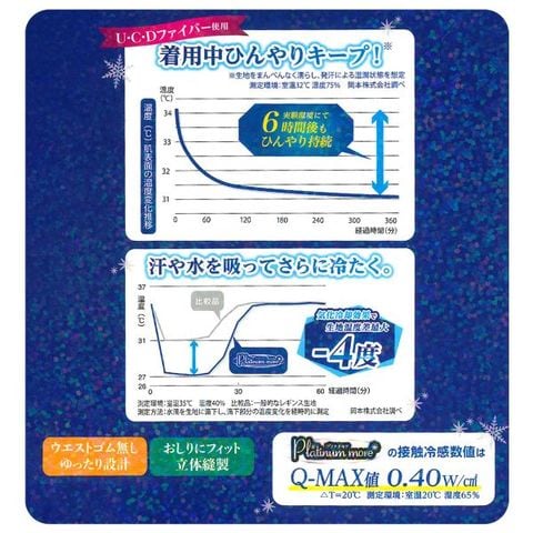 気化冷却効果による生地温度最大-4度でひんやりさらさら。着用中もひんやり感が持続します。