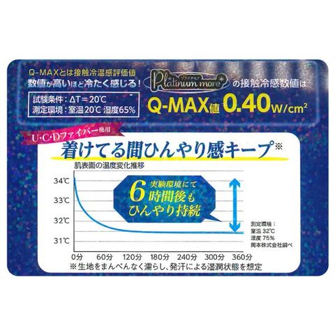 気化冷却効果による生地温度最大-4度でひんやりさらさら。つけている間ひんやり感が持続します。