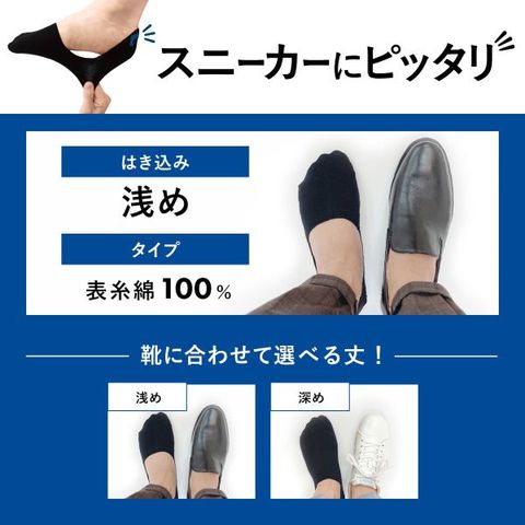 丈感はスニーカーにおすすめの【浅め】タイプです。靴から見えにくい絶妙な丈設定でコーディネートの邪魔をせず、シンプルな無地デザインでオンオフ問わずお使いいただけます◎