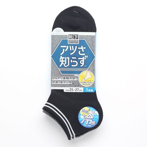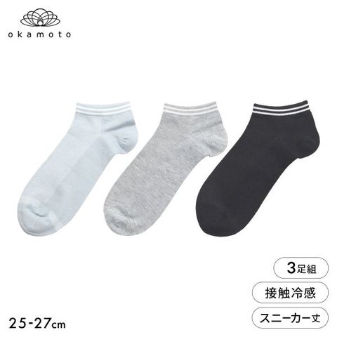 靴下研究所 アツさ知らず ソックス 3足組 スニーカー丈 甲メッシュ ひんやり接触冷感 春夏 メンズ 靴下 25-27cm オカモト okamoto