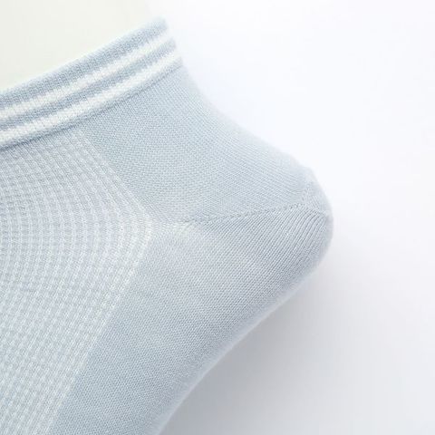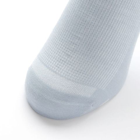 接触冷感とメッシュ構造により通気性UP!つま先とかかとに接触冷感生地を使用し、ひんやり快適な履き心地。