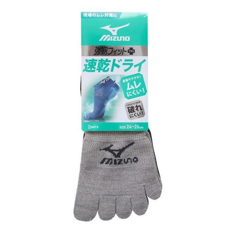 ミズノ ワークソックス 速乾ドライ 5本指 ショート丈 2足セット 強靭 メッシュ サポート メンズ 靴下 24-26cm 26-28cm MIZUNO WORK