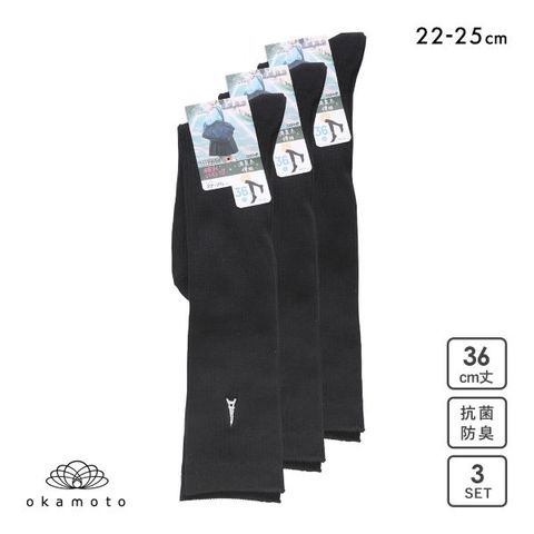 JOSE スクールソックス ジュニア 36cm丈 ハイソックス 3足組 刺繍 エッフェル塔 破れにくい 消臭 靴下 22-25cm okamoto 632187