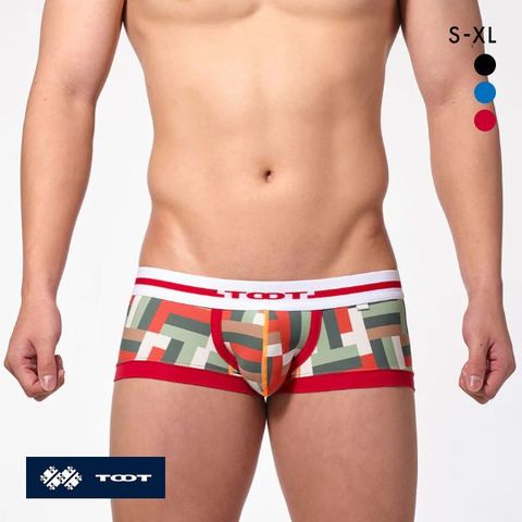 中間色のブロック柄とネオンカラーや原色を取り入れたトリミングが印象的なウルトラマイクロボクサー「マルチブロック ボクサー II」。スポーツユニフォームにも用いられたようなスポーティーヴィンテージストライプを着想に、TOOTの頭文字「T」を組み合わせたオリジナルのブロック柄を、発色が良くなめらかな肌触りと伸縮性がクセになるブランド定番のストレッチナイロン生地にプリントしました。S~XXLサイズでレッド・ブルー・ブラックの3色をご用意。