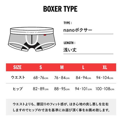 | サイズ | メンズ Sサイズ:ヒップ 82-89cm(ウエスト 68-76cm) Mサイズ:ヒップ 88-95cm(ウエスト 76-84cm) Lサイズ:ヒップ 94-101cm(ウエスト 84-94cm) XLサイズ:ヒップ100-108cm(ウエスト94-104cm) ※ウエストよりも、腰回りのフィット感が、はき心地の良し悪しを左右しますのでヒップの寸法を基準にお選びいただくことをおすすめしております。 |
