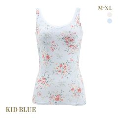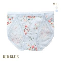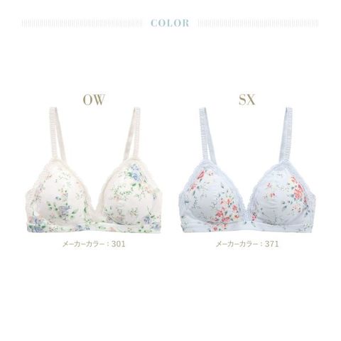 爽やかなローズ柄が美しい、kid blueのフラワープリントノンワイヤーブラジャー。通気性と柔らかな風合いが魅力の新素材を使用し、半円レースで可愛らしさをプラスしました。