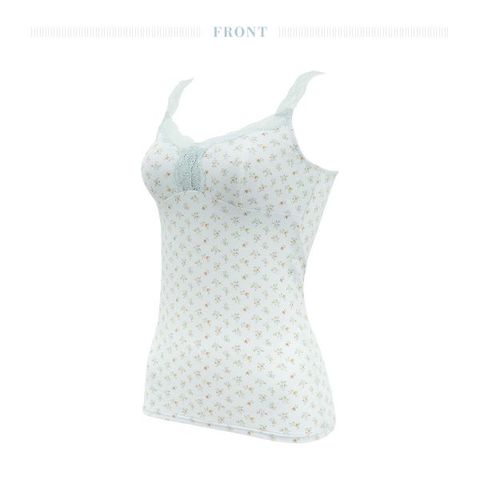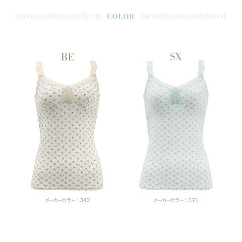 肌触りが良く、伸縮性に優れたスーピマ混綿ベア天を使用しています。フロントにレースが重ねられたカップ付きキャミソールで、ブラジャーなしで1枚で着用できる便利なアイテムです。カップの裏地は前身頃のみで、柔らかな着心地を提供します。肩ストラップには伸縮性のあるレースを使用しており、食い込みがなくずれにくいのが嬉しいポイントです。