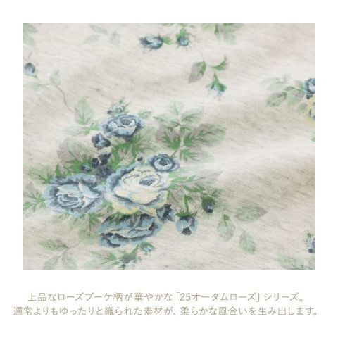 上品なタッチで描かれたローズブーケ柄が華やかな「25オータムローズ」シリーズ。通常よりゆったり織った素材が、空気を含んだ軽く柔らかな風合いを生み出します。