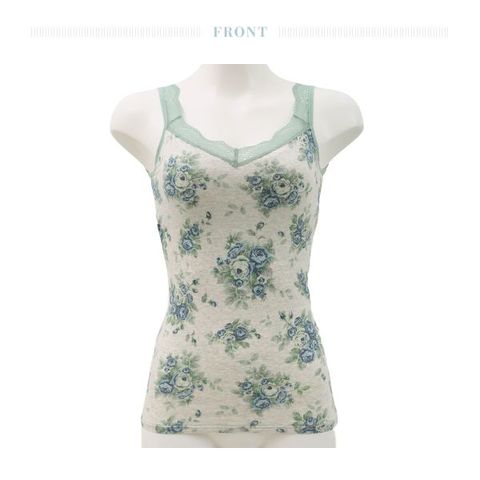 ブラジャー無しで1枚で楽に着られると人気のカップ付きキャミソールです。フロントからストラップ、背中に続くボーラーレースが華やか。背中に裏地がないのでソフトな着用感。カップ裏とアンダー部分には綿ベア天を使用し、肌への優しさにもこだわりました。