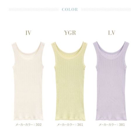 肩の負担が少なくずれにくいタンクトップタイプで、快適な着心地。アウターにも響きにくいワンカラーデザインは、インナーとしてはもちろん、トップスとしても活躍します。