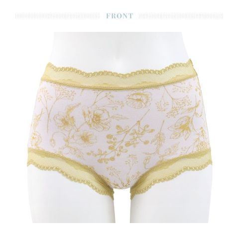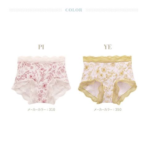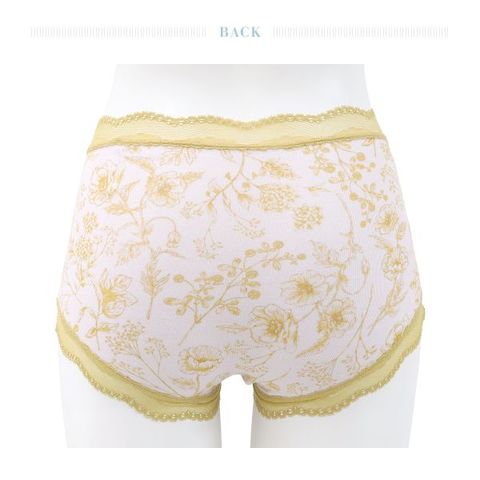 お腹やヒップを包み込み、安心感のある履き心地が魅力。スケッチのような美しい花柄が楽しめます。ウエストと脚口のストレッチレースが大人のかわいらしさをプラス。ブランドネームやタグはプリント仕様で、肌ストレスに配慮しました。