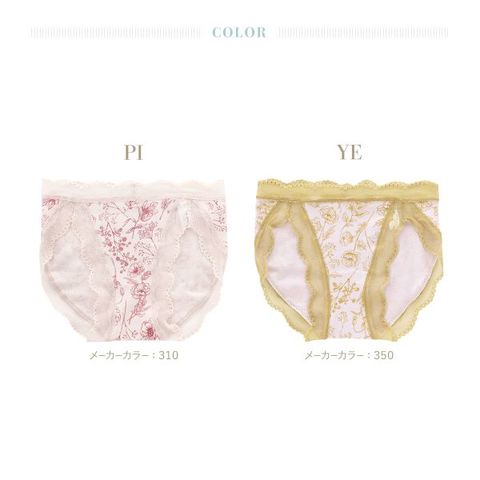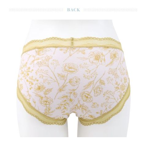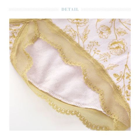 スケッチのような花々が美しく、広い脚口で動きやすい快適な履き心地。ウエストと脚口の配色レースがデザインのアクセントです。ブランドネームやサイズタグはプリント仕様で、肌ストレスに配慮したやさしいインナーです。
