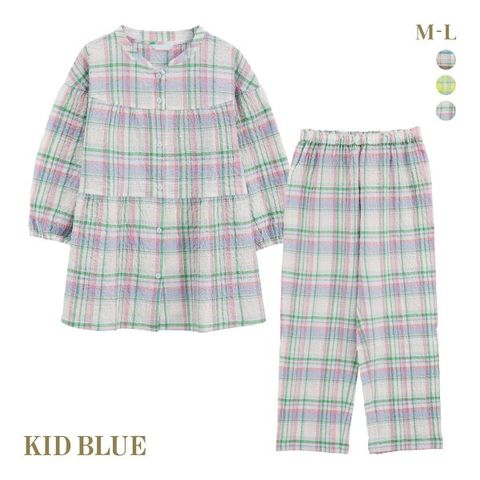 【送料無料】 キッドブルー 25シャーリングチェック ルームウェア 長袖 ロングパンツ 上下セット パジャマ KID BLUE