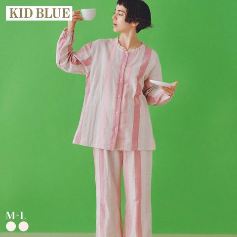 【送料無料】 キッドブルー 26Wガーゼ ストライプ 長袖 フルレングス 上下セット パジャマ ルームウェア KID BLUE